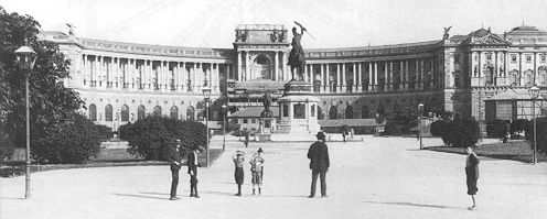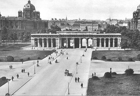 Abb 25: Äusseres Burgtor, Ringseite. Blick zur Neuen Hofburg, um 1900.